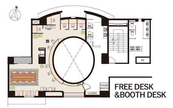 意欲的に活動する人もそんな言葉を言いたくなる、メリハリのあるクリエイティブな生活のきっかけを与えるライフスタイルオフィス。気軽に立ち寄り、一息つくことのできる地域の共有財である公園のようにオフィスワーカー、クリエイター、学生、近隣住民ら属性を問わず人々が集い、交わる場。