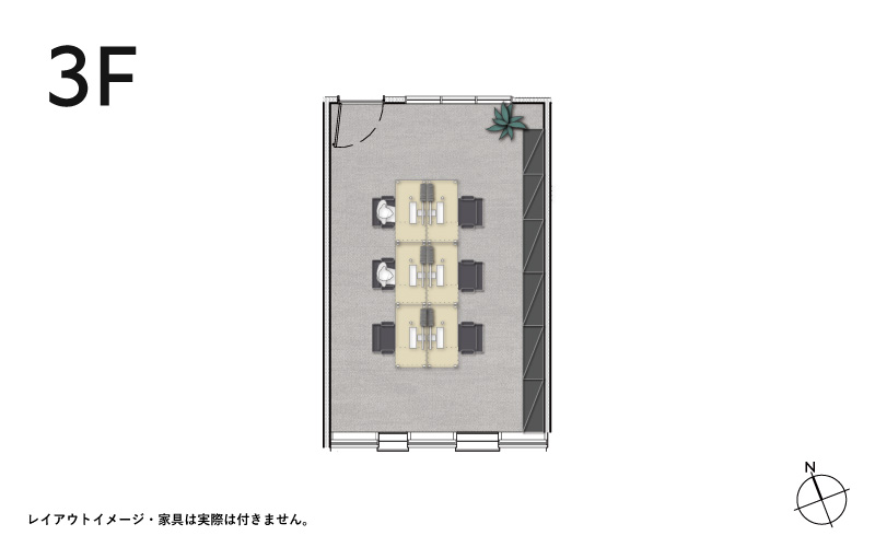 - 床:タイルカーペット、壁:塗装、天井:躯体現し(一部ボード張り)
