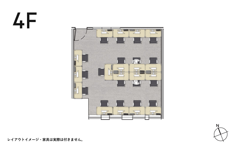 - 床:タイルカーペット、壁:塗装、天井:躯体現し(一部ボード張り)