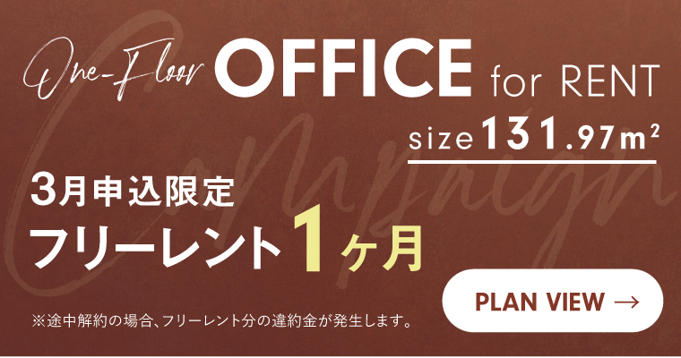 オフィス区画は、完全2面採光の1フロア約90㎡(バルコニー付)~約132㎡をご用意しています。躯体現しのシンプルな内装でレイアウトしやすく、理想的でクリエイティブなオフィスやショールーム空間を作ることが可能です。
