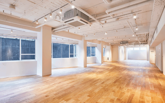 2.8mのスケルトン天井とフローリングに白塗装のシンプルでクリーンなJUNCTION spaceは、中長期的なファッション、アパレル、インテリア、コスメなどの物販やショールーム、ショップ&オフィスとして最適です。
