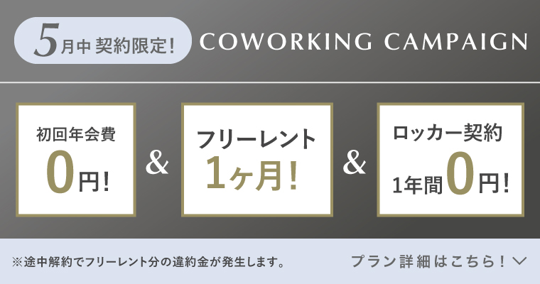 - 社名表示・専用ポスト全て利用可、専用ロッカー(有料)、共用複合機使用料、会議室利用料、施設内店舗割引、ワーケーション施設割引