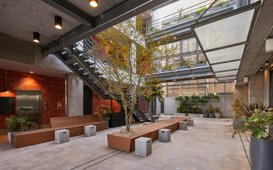 1棟リノベーションを行い2022年2月にショップ、シュアオフィス、オープンラウンジからなるライフカルチャー発信地としてオープン。