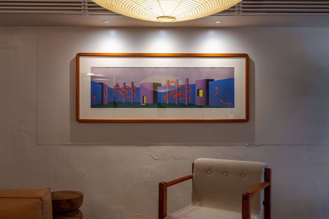 1階のエントランスやラウンジのアートは「Attachment.」というNEUKの施設コンセプトをもとに、”ぐねぐね”のモチーフを入れました。それを「人」と「出会い」と「交流」のエネルギーに見立て、絡み合いながら広がっていくイメージで、「街との繋がりを象徴するもの」としてメインに配置しました。”ぐねぐね”が建物を突き破ったり、壁を突き破ったりするのを建物に囲まれた空間と対比させることによって、「NEUKで生まれたコミュニティが壁を越えて街に流れ込んで新たな何かを生み出していく」というのを表現しました。
