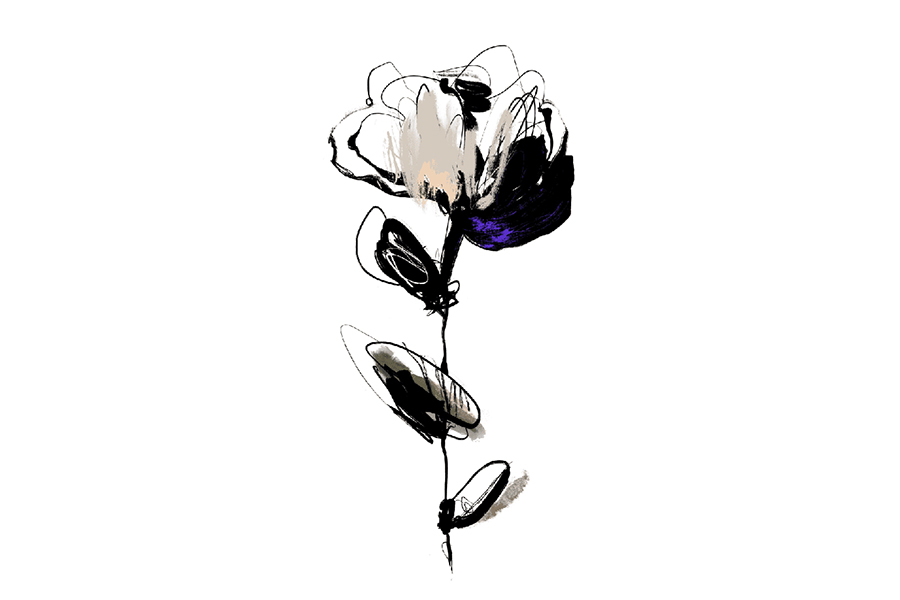 花のモチーフはよく描きますが、階段踊り場の壁を見た時にすぐモノトーンと決めました。