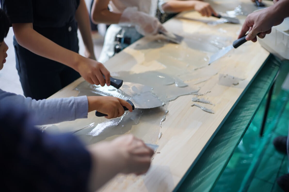 廃材や天然素材からオリジナルの塗料を作り出す「NULL(ナル)」によるサステナブルに触れるワークショップを開催。