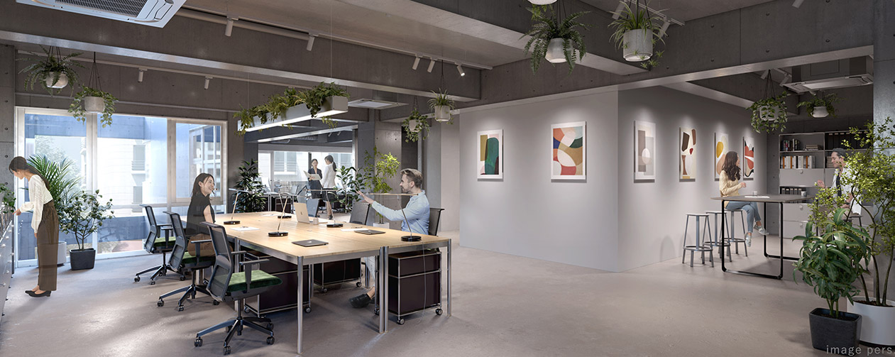 FURAM SANGUBASHIは2025年まで予備校だったビルをコンバージョンしたオフィスビル。