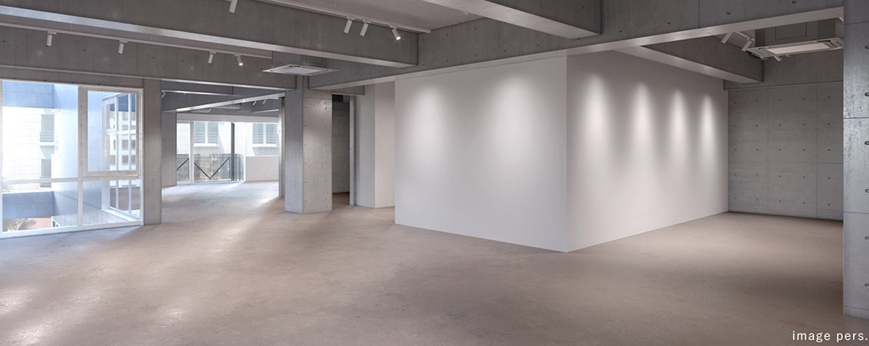 【仕上げ】床:カーペット(OA)、天井:躯体現し、壁:躯体現し・ボード塗装